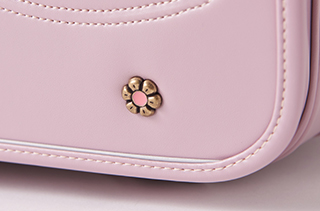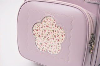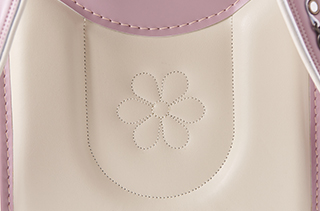 背面キュートなお花のワンポイント。人工皮革(ベルエース)使用